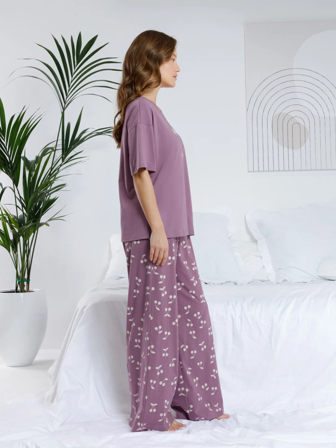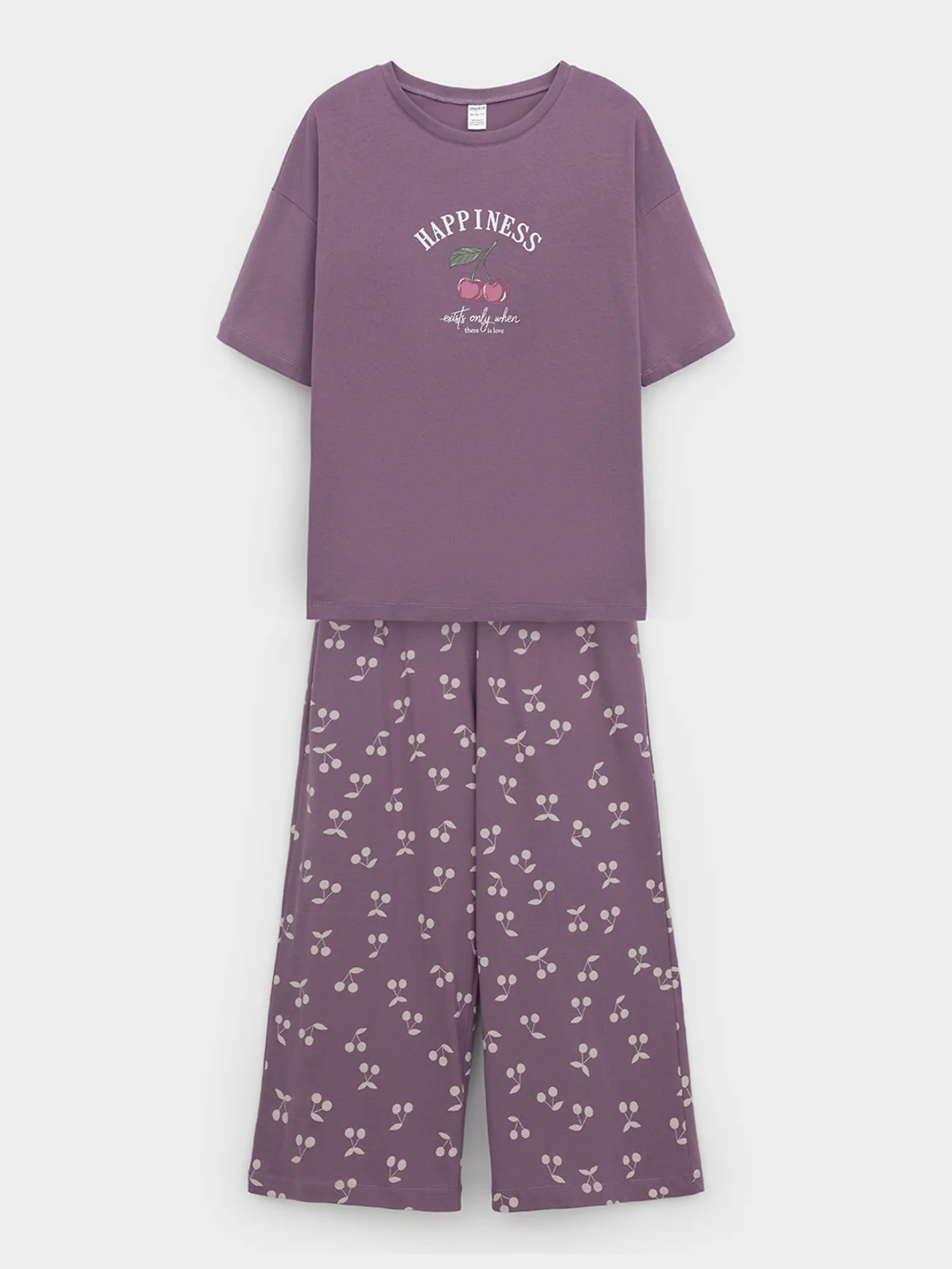 Комплект для комфортного сна и отдыха из гладкого трикотажного полотна. Футболка с короткими спущенными рукавами и прямые брюки с мягкой эластичной резинкой в поясе, которые удобно садятся по фигуре. Лёгкий материал приятен к телу, не теряет форму и позволяет коже дышать. Все трикотажные полотна производятся в соответствии с нормами швейцарского сертификата ЭкоТекс.