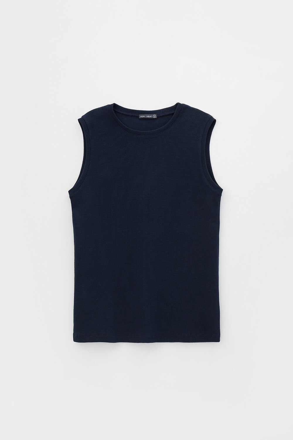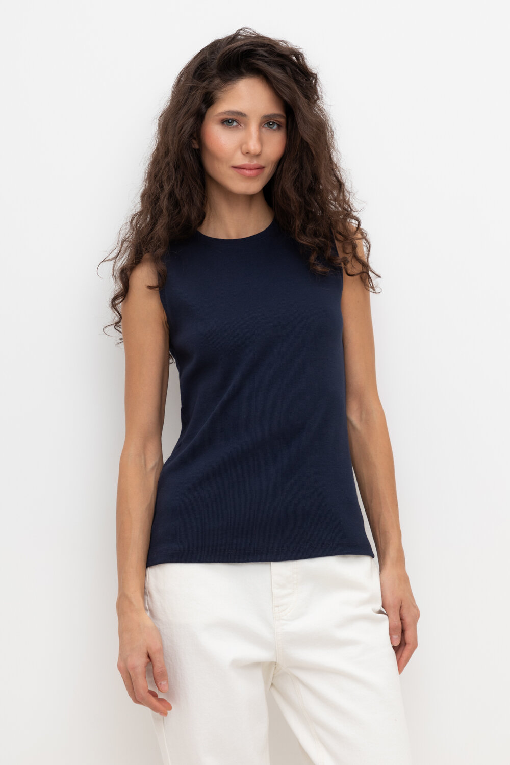 Базовая майка из трикотажного полотна в рубчик с добавлением эластана.
