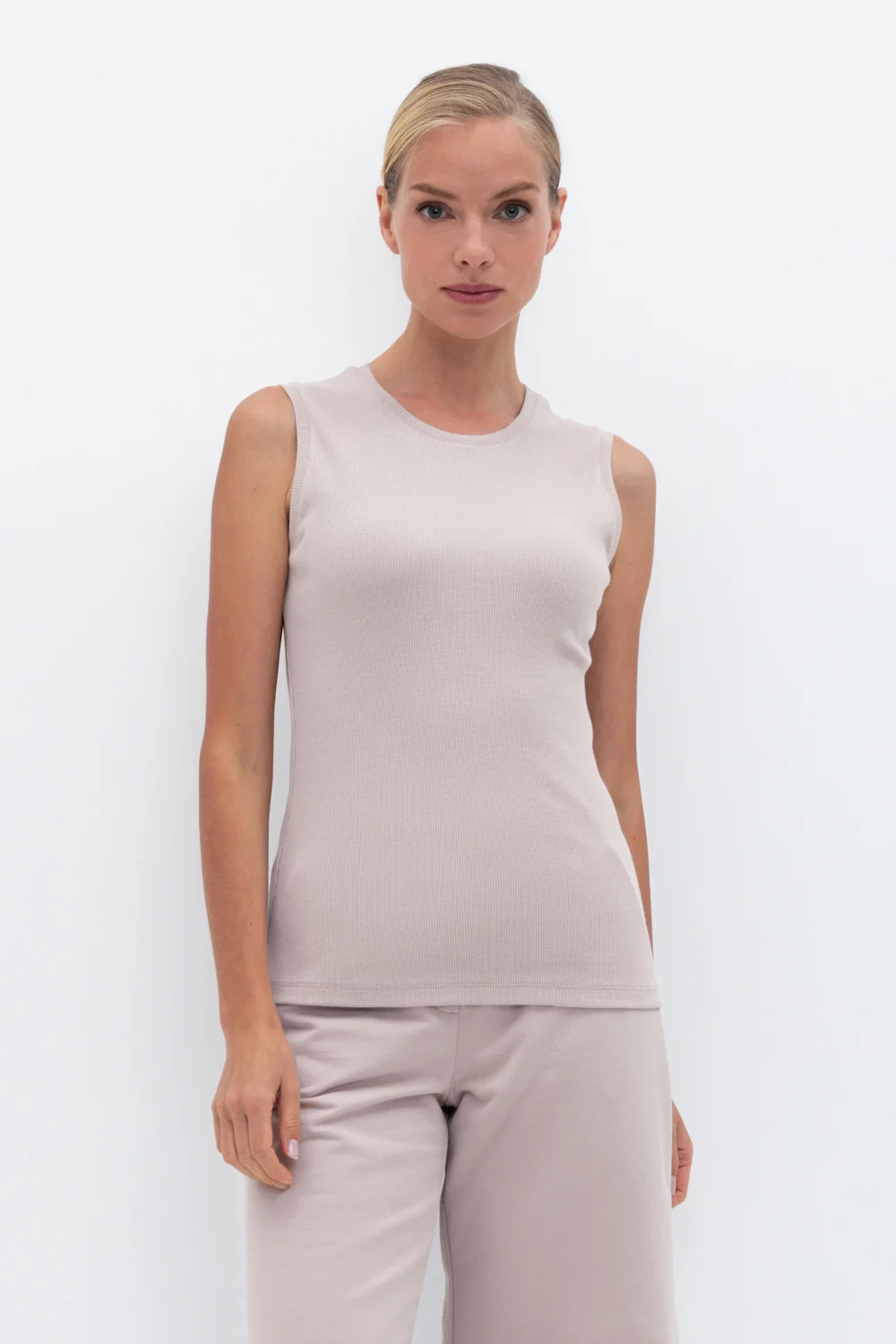 Базовая майка из трикотажного полотна в рубчик с добавлением эластана.