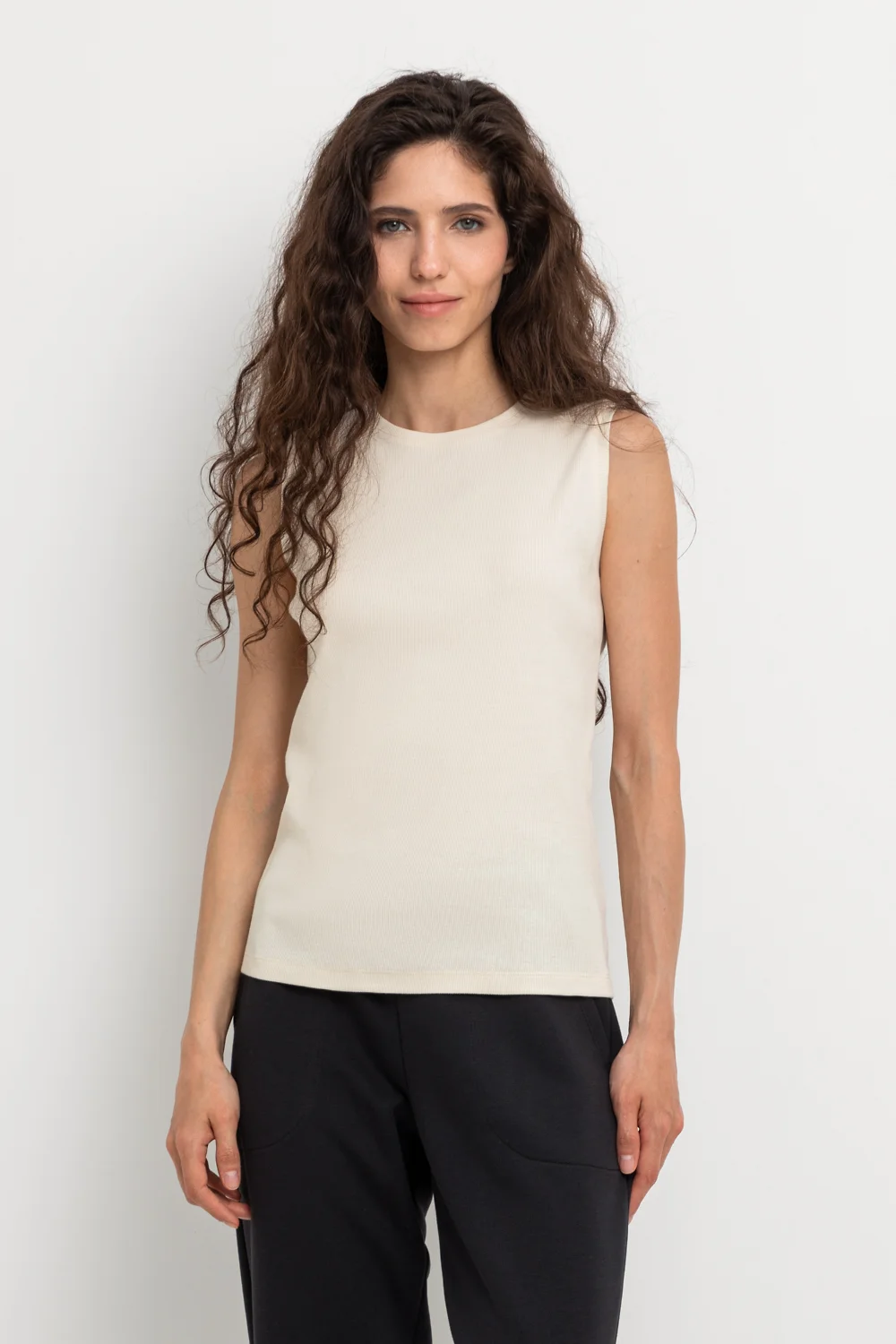 Базовая майка из трикотажного полотна в рубчик с добавлением эластана.