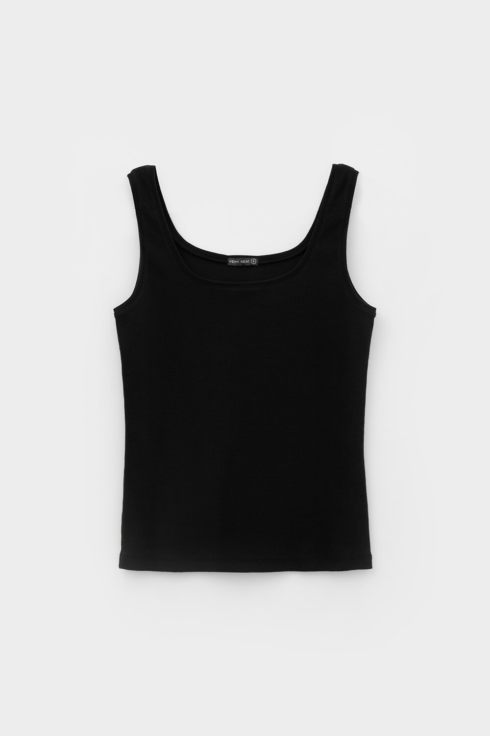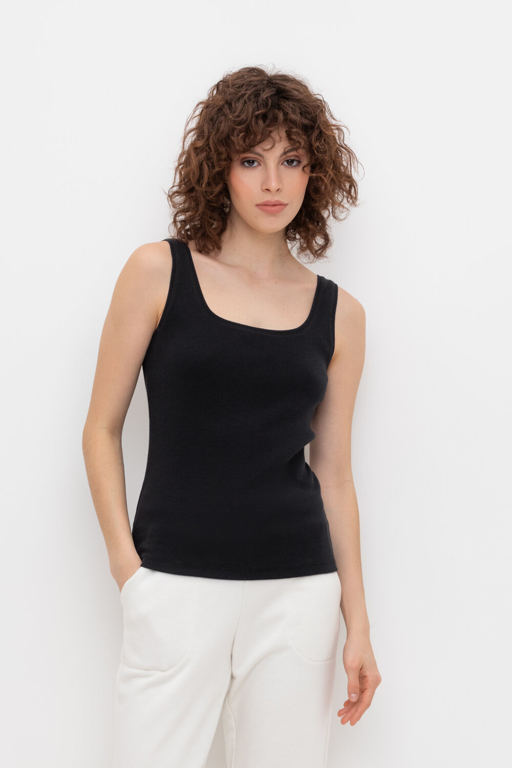 Базовая майка из трикотажного полотна в рубчик с добавлением эластана.