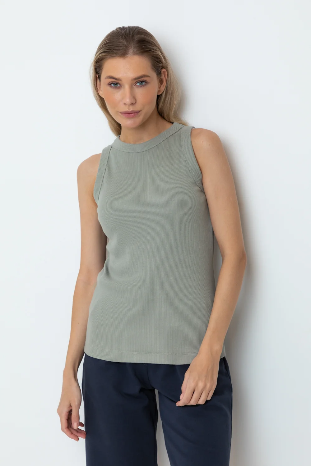 Базовая майка из трикотажного полотна в рубчик с добавлением эластана.