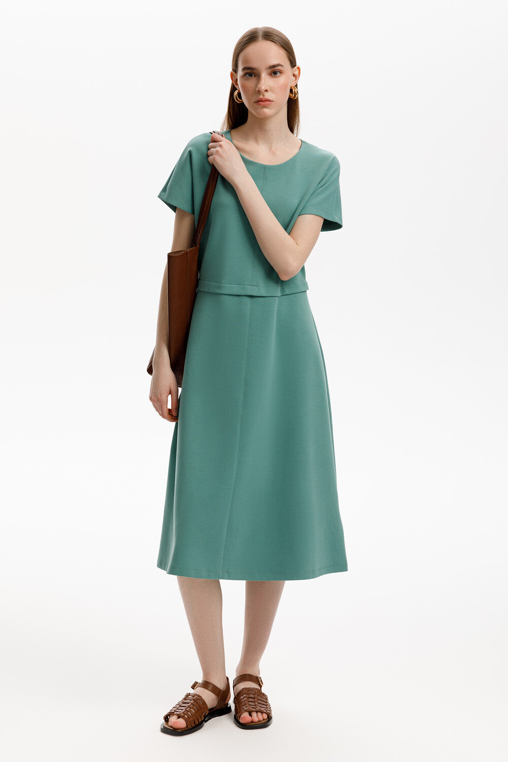 Классический силуэт летнего платья, изготовленного из премиального трикотажа DOUBLE FACE, дарит невероятное ощущение комфорта и легкости. Спущенный цельнокроеный рукав придает изделию романтический образ.