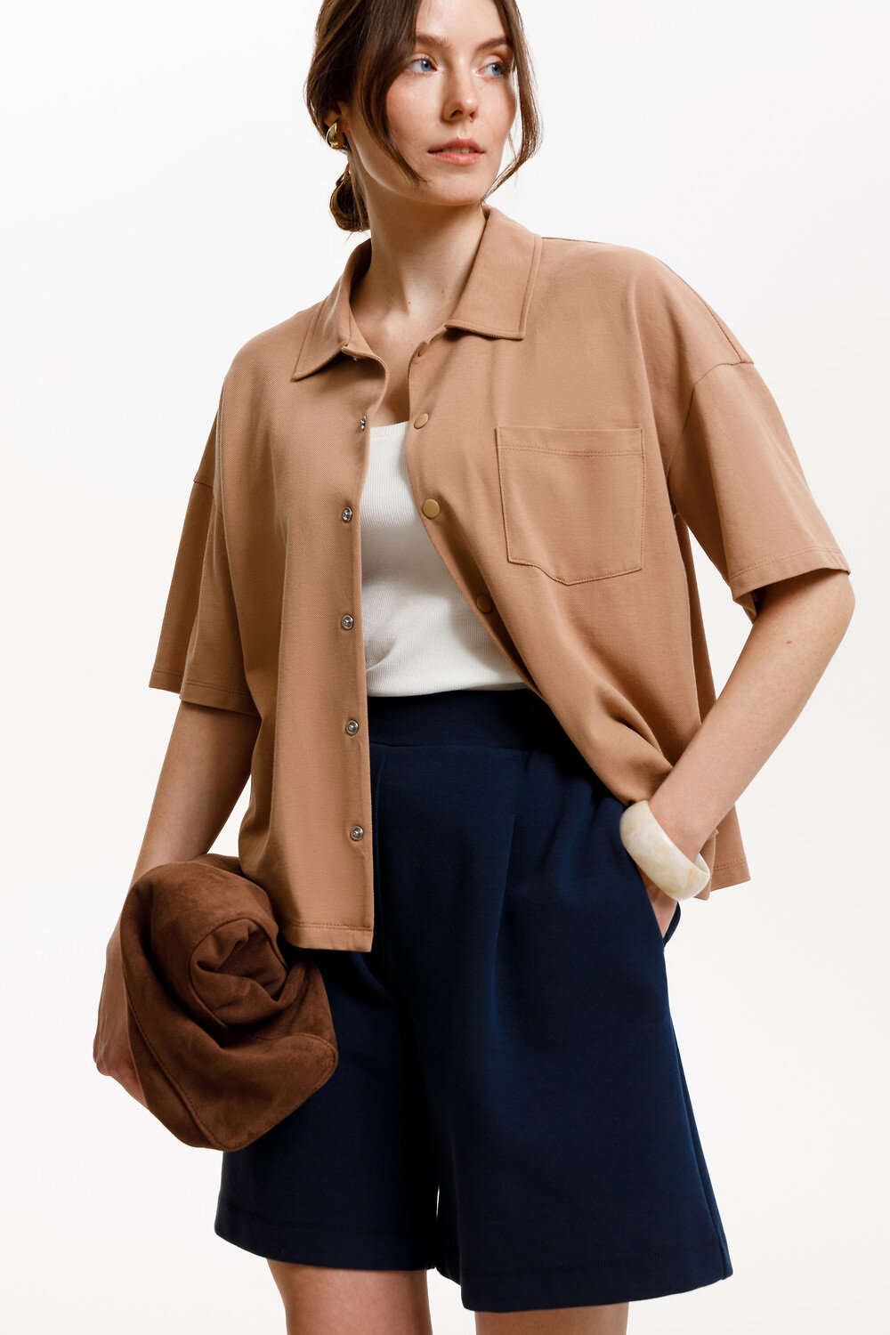Рубашка-поло из трикотажного полотна пике имеет классический воротник и короткий спущенный рукав. В сочетании с брюками из этой коллекции, вы создадите стильный образ для теплых летних дней.