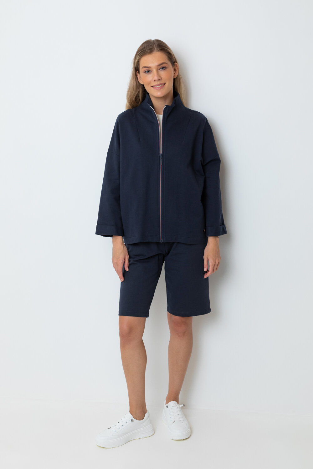Удлиненные трикотажные шорты прямого кроя с боковыми карманами из петельчатого футера, произведенного из высококачественного гребенного хлопка.