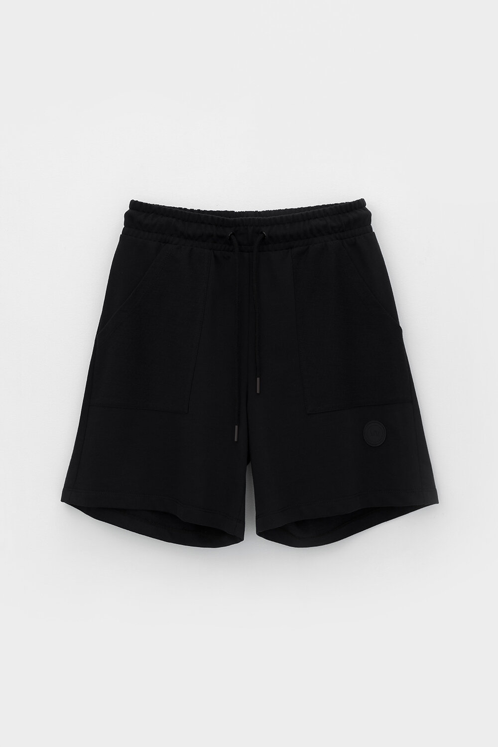 Женские шорты из футера на резинке с удобными карманами наизнанку. Пояс утягивается по ширине круглым шнуром. Низ обработан плоскими швами.