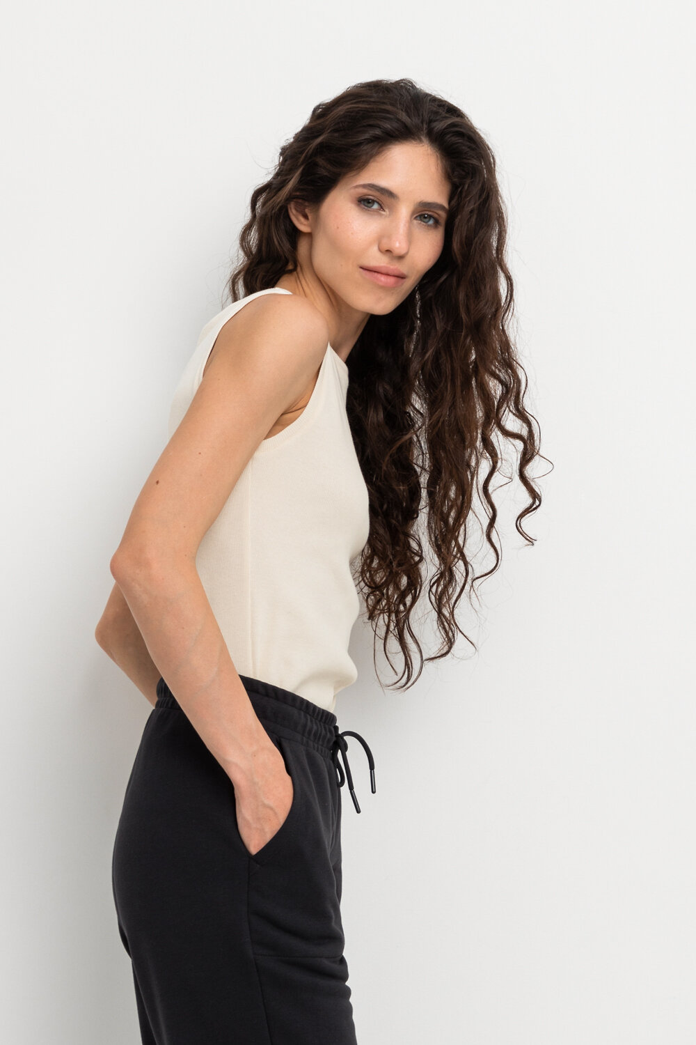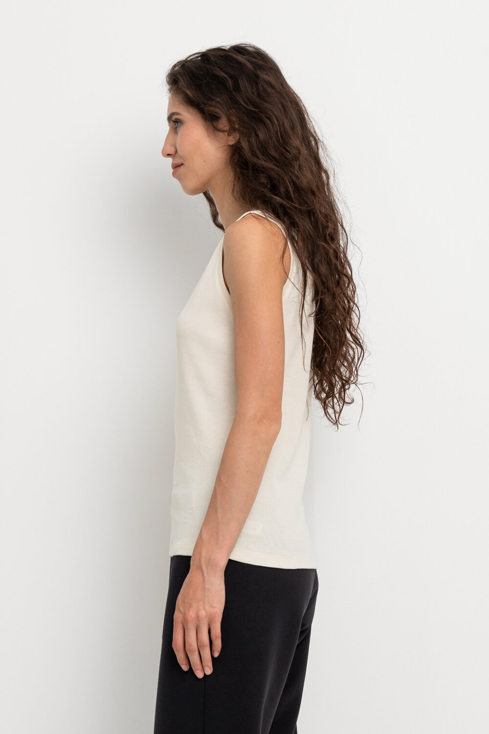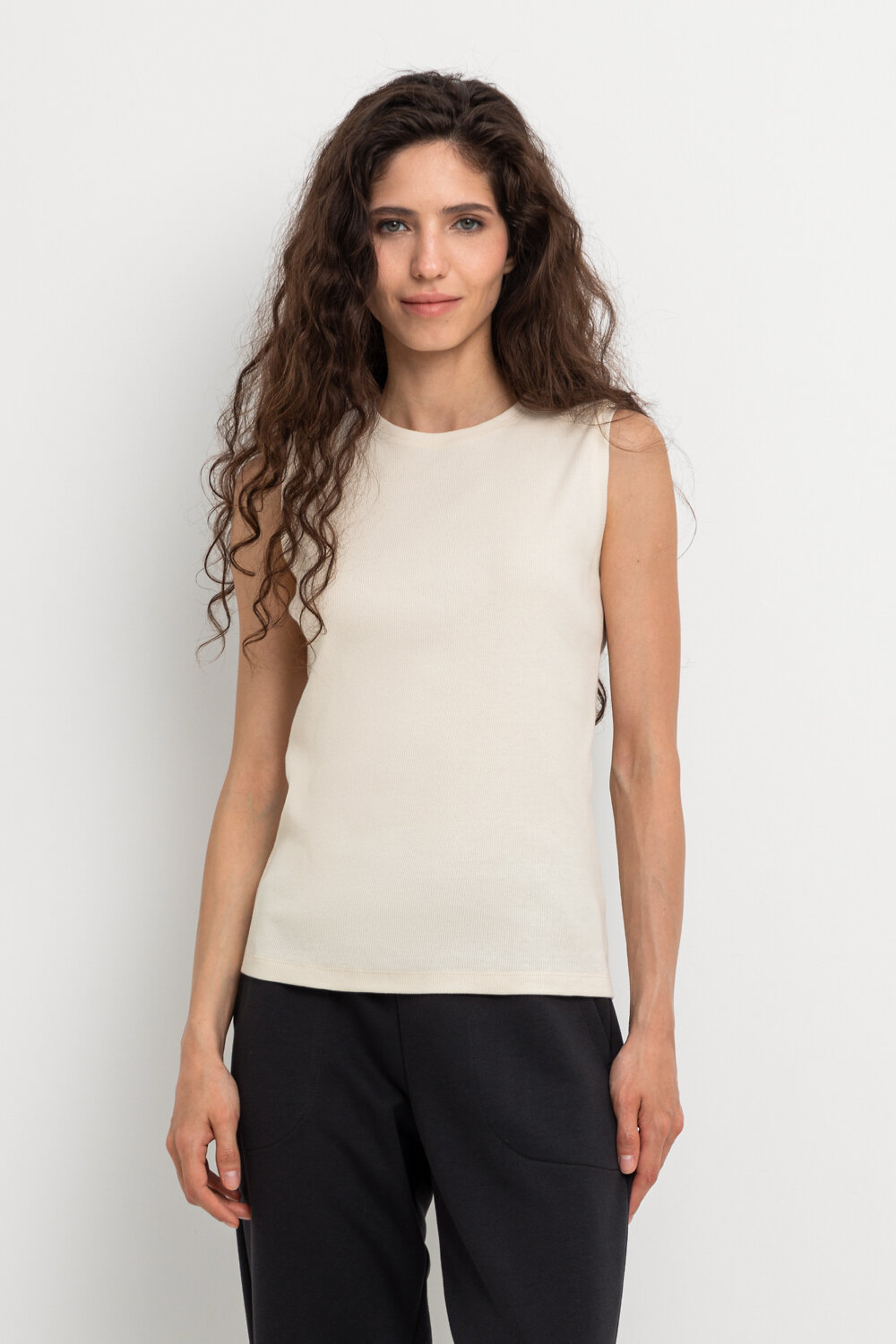 Базовая майка из трикотажного полотна в рубчик с добавлением эластана.