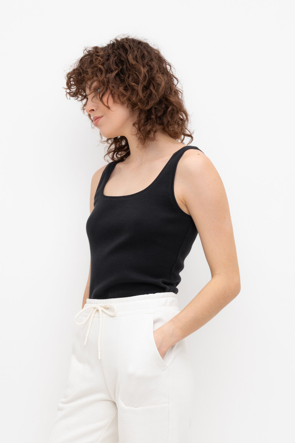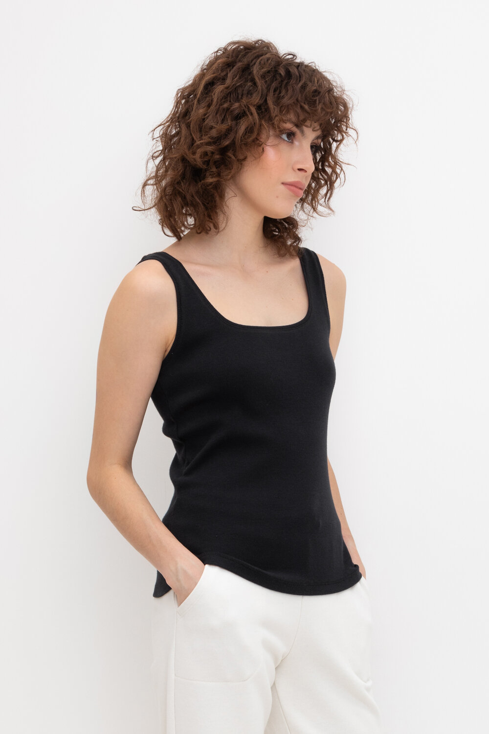 Базовая майка из трикотажного полотна в рубчик с добавлением эластана.