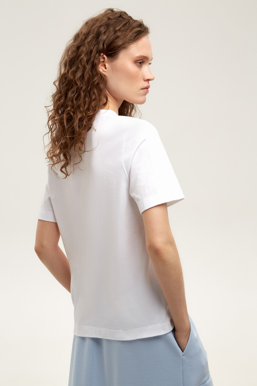 Футболка прямого силуэта из высококачественного гребенного хлопка. Мягкий на ощупь принт выполнен из водных красок, что обеспечивает устойчивость к многократным стиркам, а его дизайн добавляет летнего настроения.