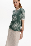 Базовый джемпер с короткими рукавами и воротником-стойкой из плотного однотонного трикотажа супрем с добавлением спандекса.