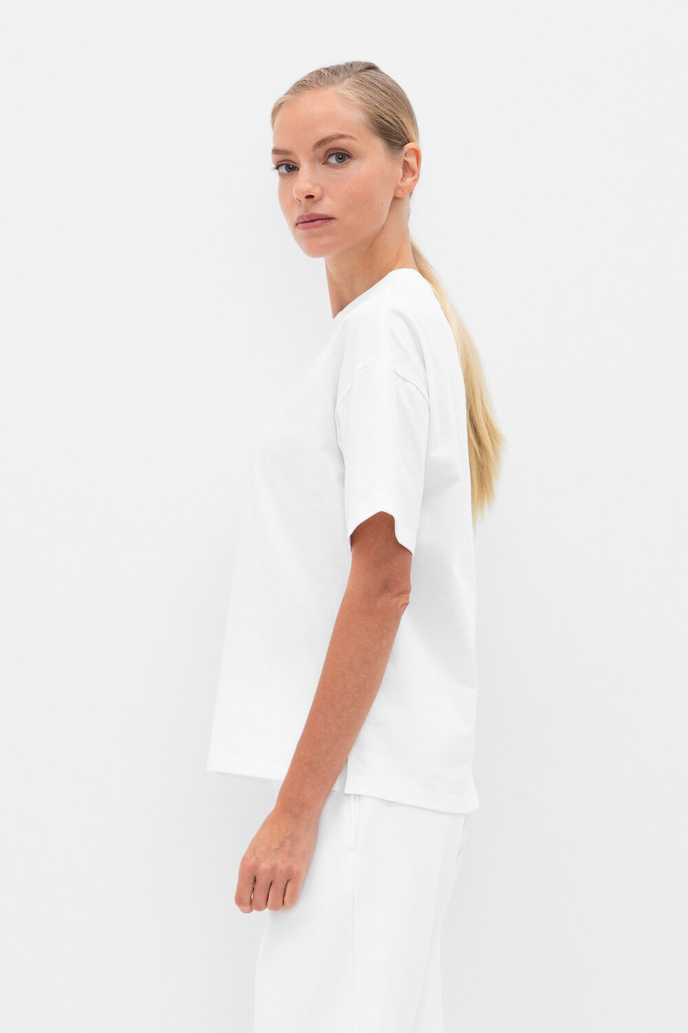 Женская футболка с разрезами и принтом из длинноволокнистого гребенного хлопка.