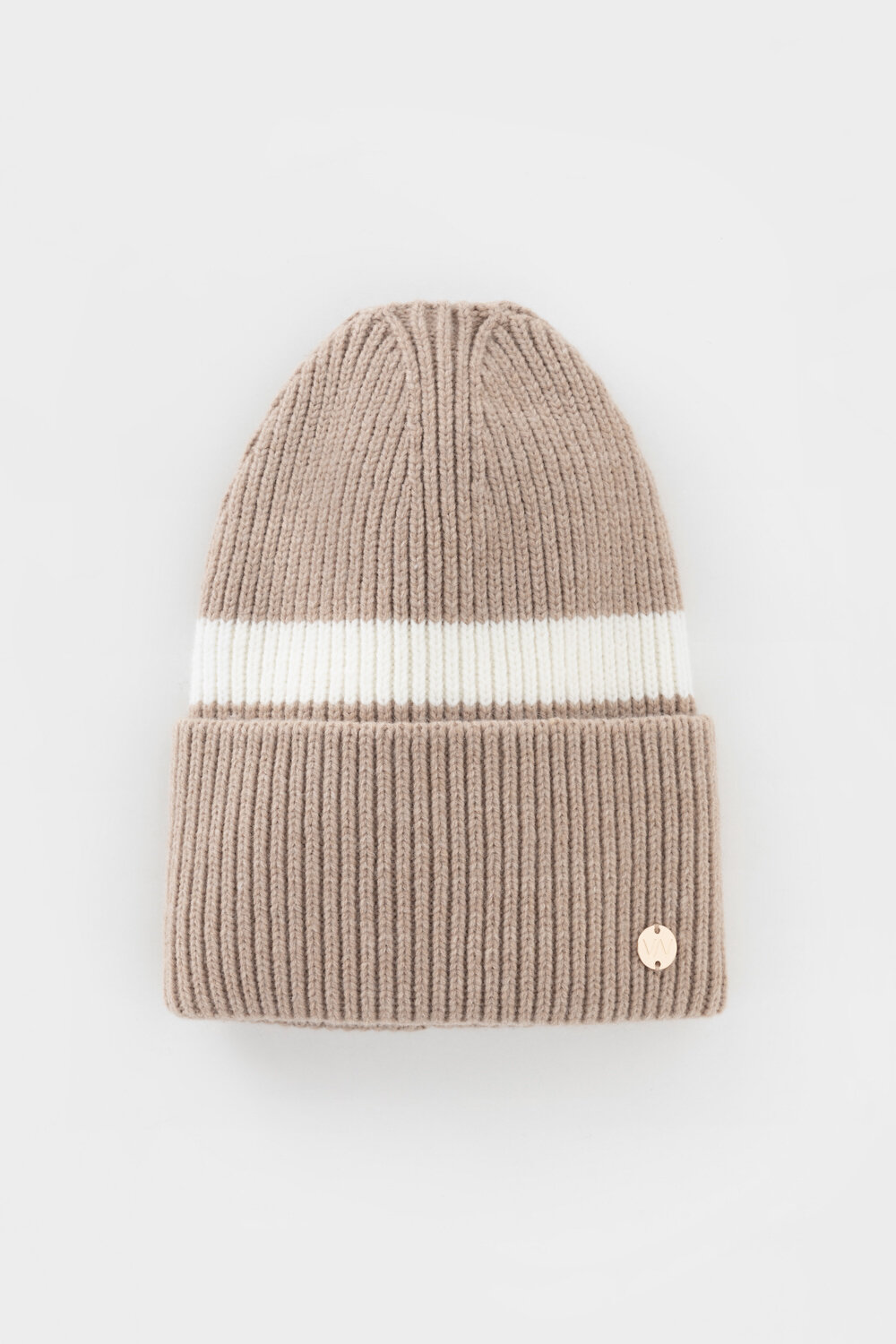 Уютная вязаная шапка с отворотом из шерсти и акрила. Шерсть хорошо сохраняет тепло, а волокна акрила делают шапку мягкой и предотвращают появление катышек. Лаконичный фасон аккуратно садится по форме головы и хорошо сочетается с верхней одеждой.
