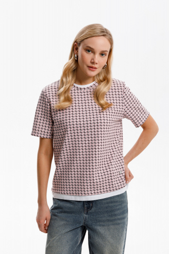 Футболка прямого силуэта из высококачественного гребенного хлопка с добавлением эластана. Мягкий на ощупь принт выполнен из водных красок, что обеспечивает устойчивость к многократным стиркам.