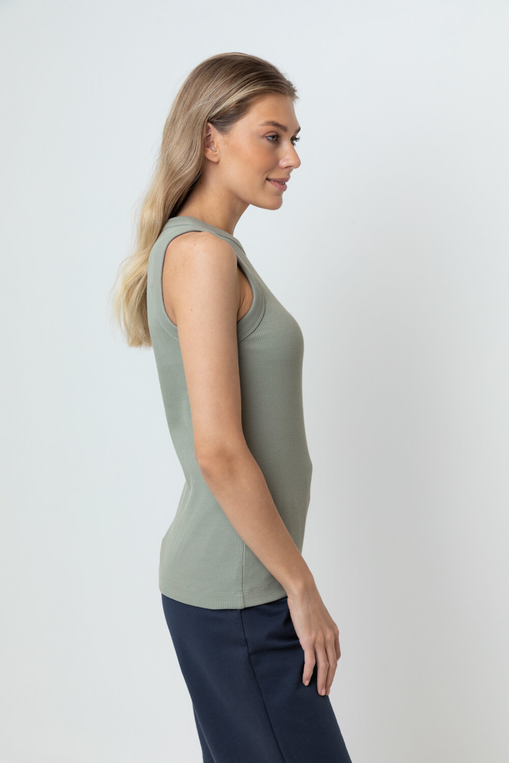 Базовая майка из трикотажного полотна в рубчик с добавлением эластана.