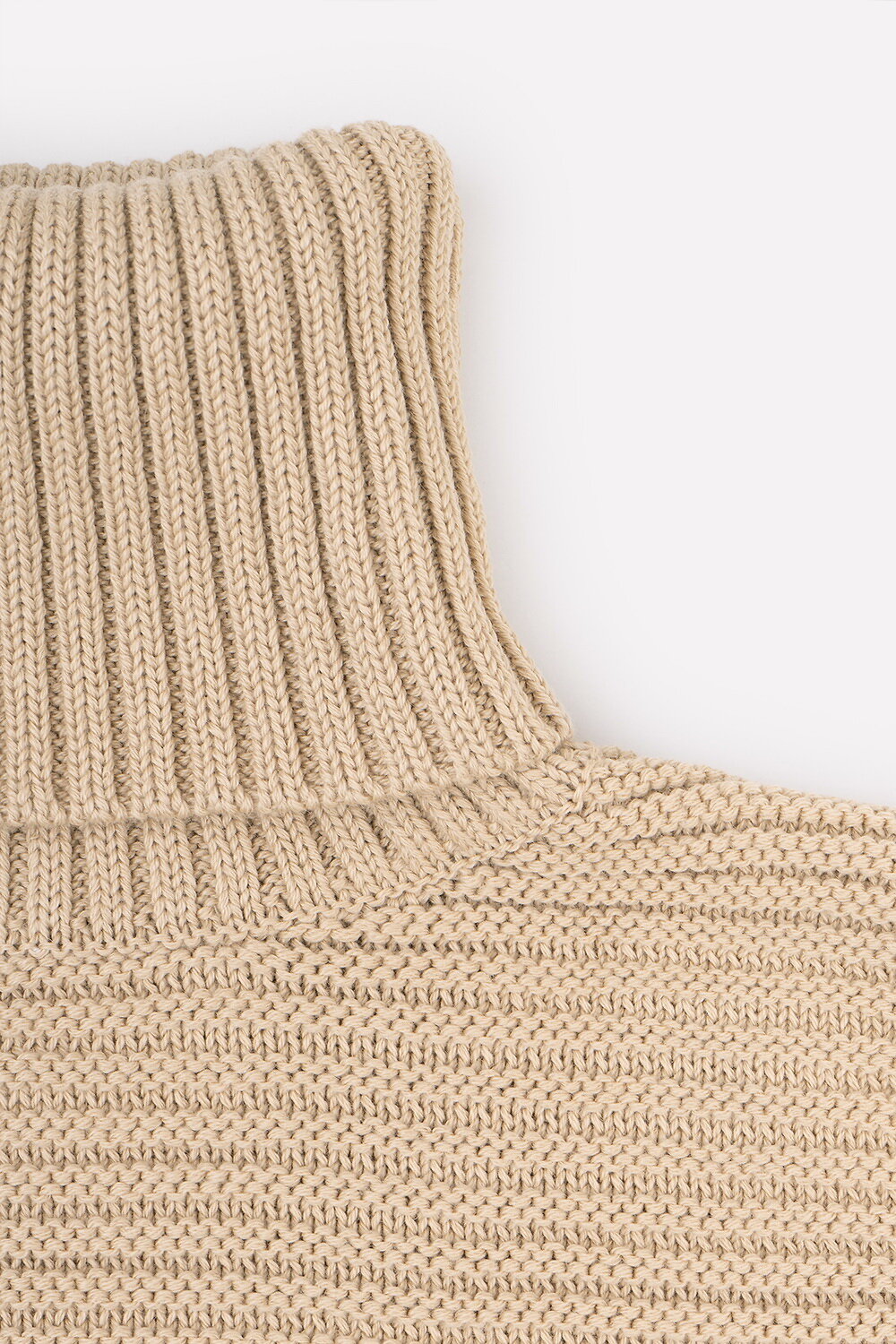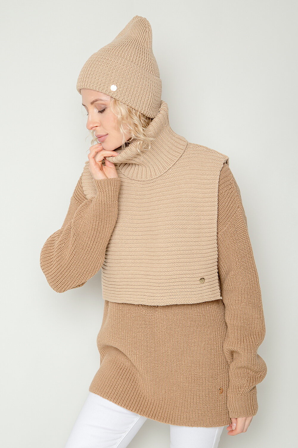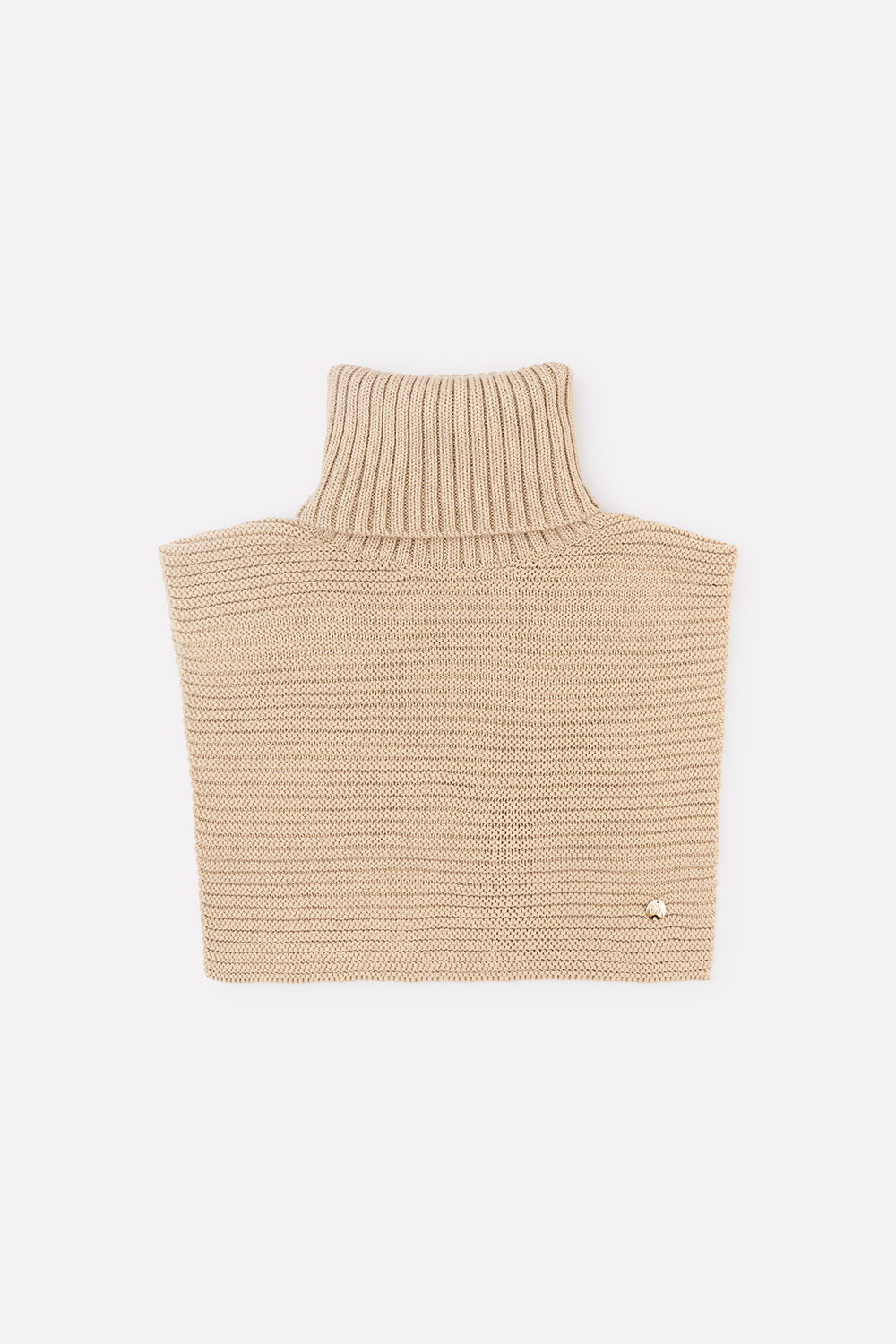 Уютная вязаная манишка с высоким воротником из итальянской шерсти и акрила. Шерсть в составе хорошо удерживает тепло, а волокна акрила делают изделие мягким и предотвращают деформацию и появление катышек. Лаконичный крой хорошо сочетается с верхней одеждой.