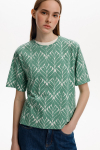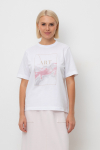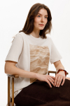 Свободная футболка из набивного трикотажа супрем. Спущенное плечо придает изделию свободный силуэт.