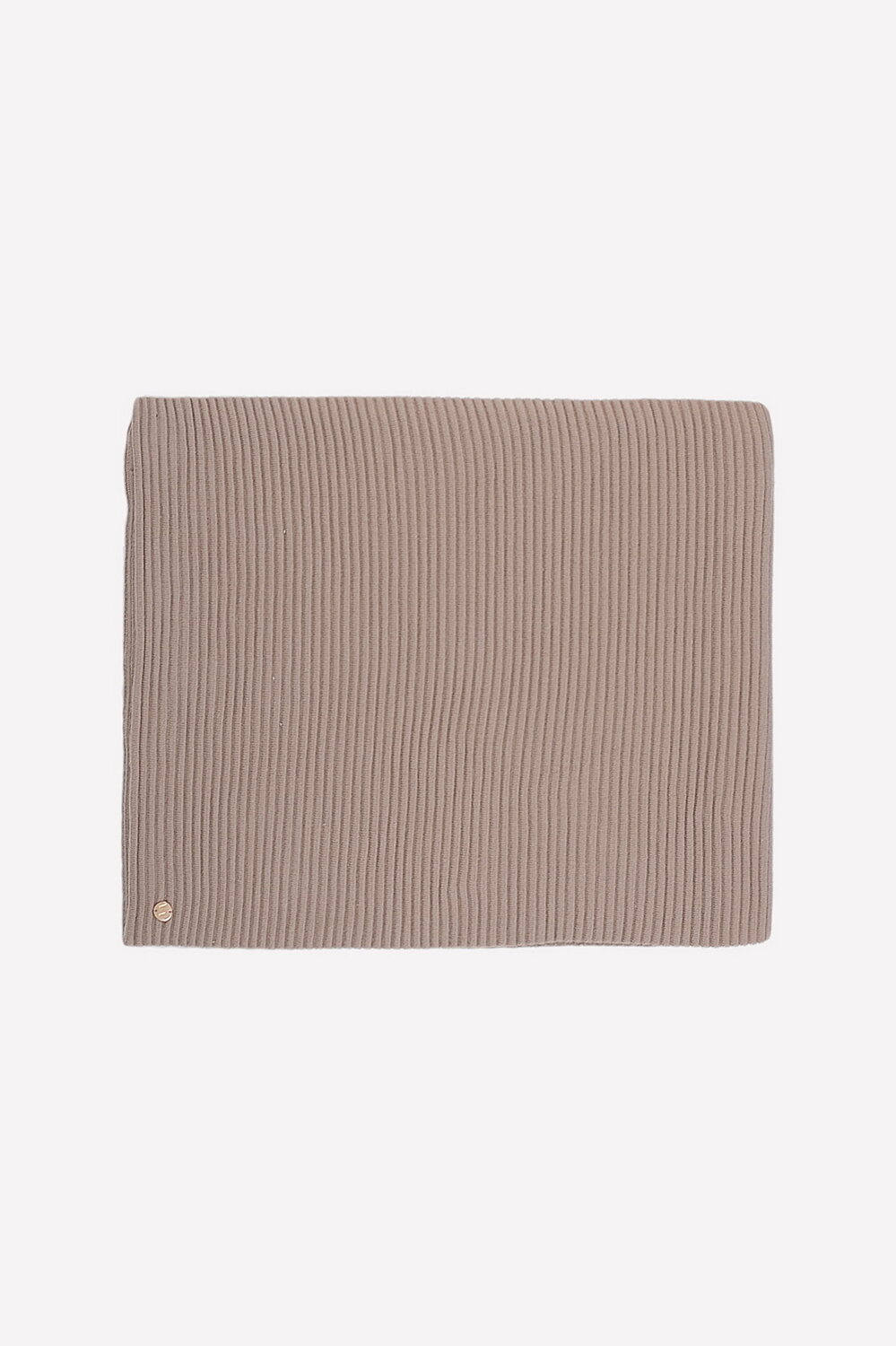 Однотонный вязаный шарф. Связан резинкой. Украшен металлическим значком с тиснёнными буквами VN и фирменной этикеткой.