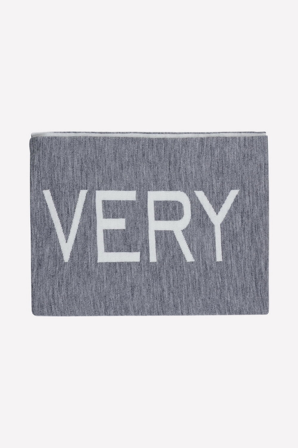 Двусторонний шарф из полушерсти с вывязанным рисунком в виде надписи VERY NEAT. Длина - 200 см, ширина - 40 см. Связан гладью. Украшен фирменной этикеткой.