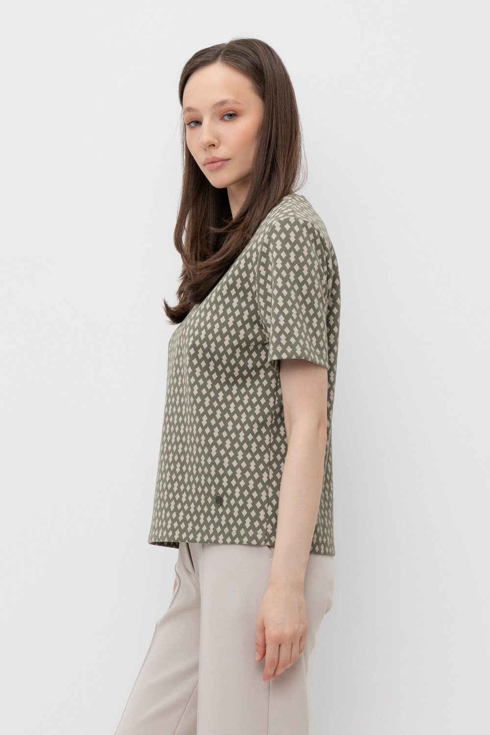 Базовая футболка из плотного набивного трикотажа интерлок.