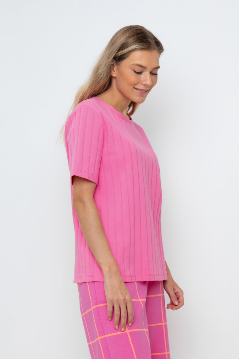 Базовая футболка из плотного гладкого трикотажа интерлок в рубчик.