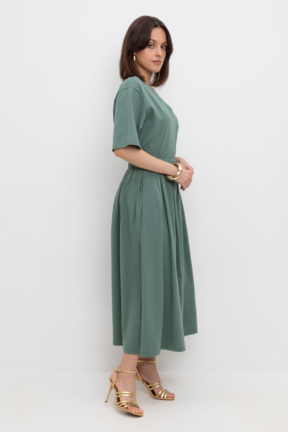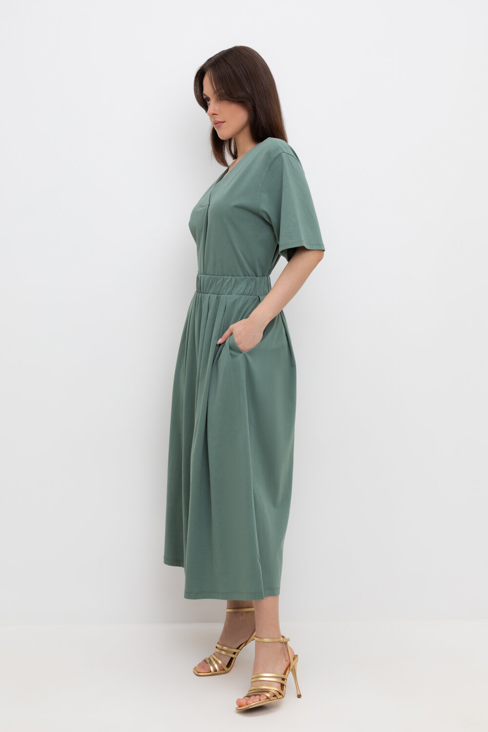 Юбка миди из длинноволокнистого гребенного хлопка с широкими мягкими складками и боковыми карманами.