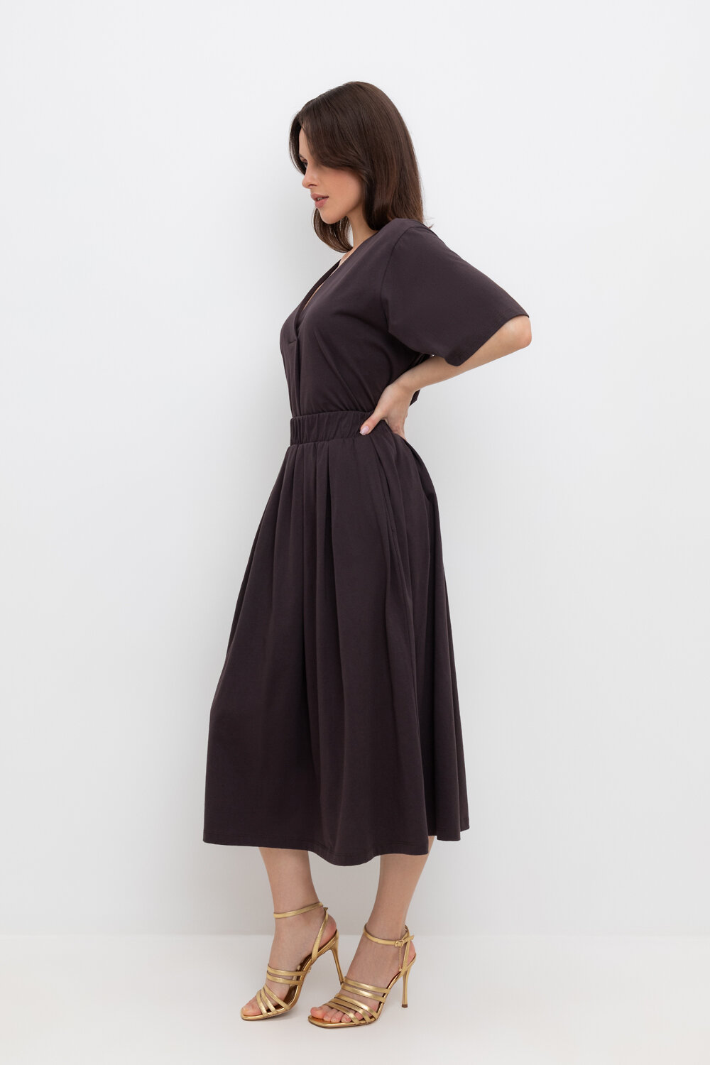 Юбка миди из длинноволокнистого гребенного хлопка с широкими мягкими складками и боковыми карманами.