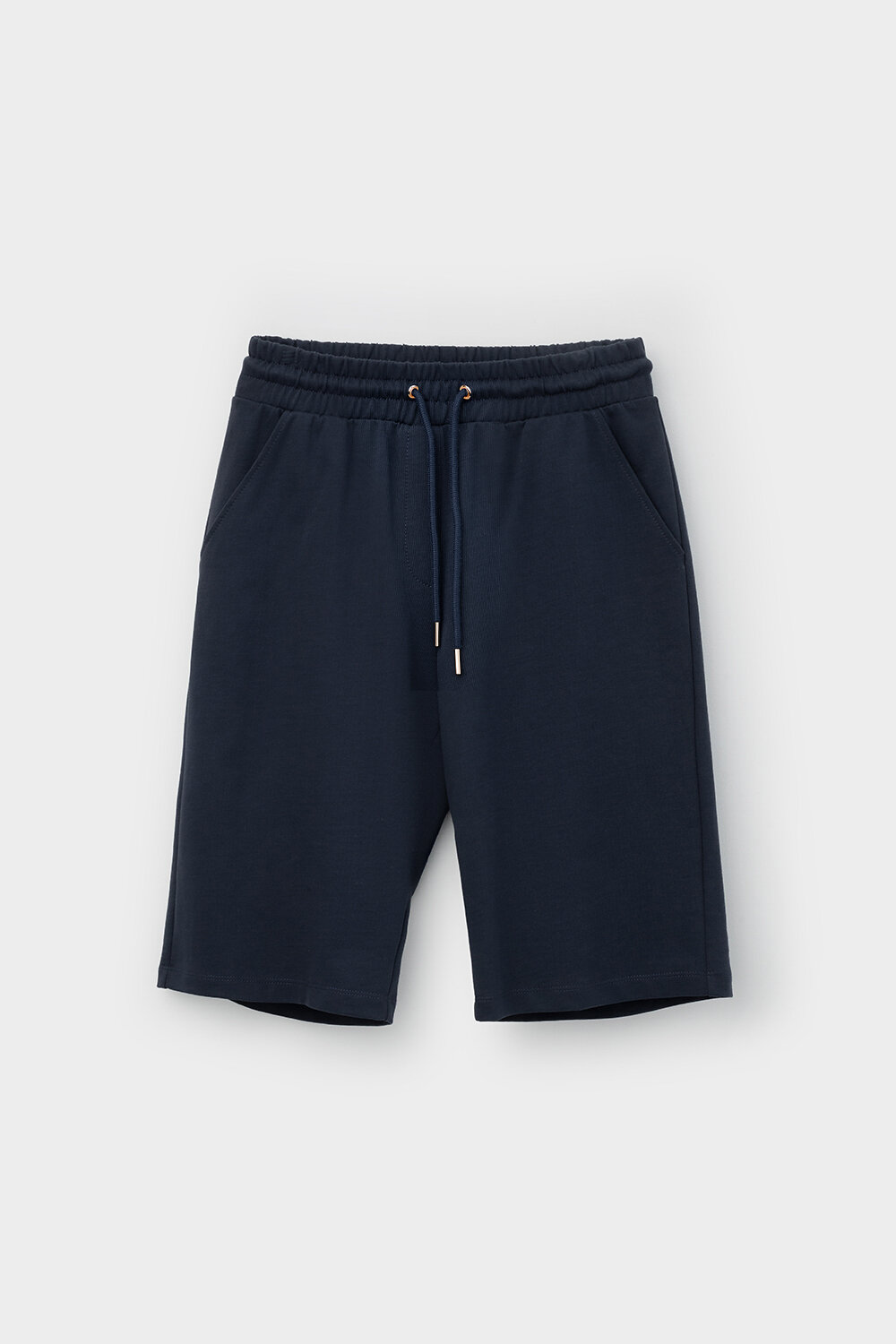 Удлиненные трикотажные шорты прямого кроя с боковыми карманами из петельчатого футера, произведенного из высококачественного гребенного хлопка.
