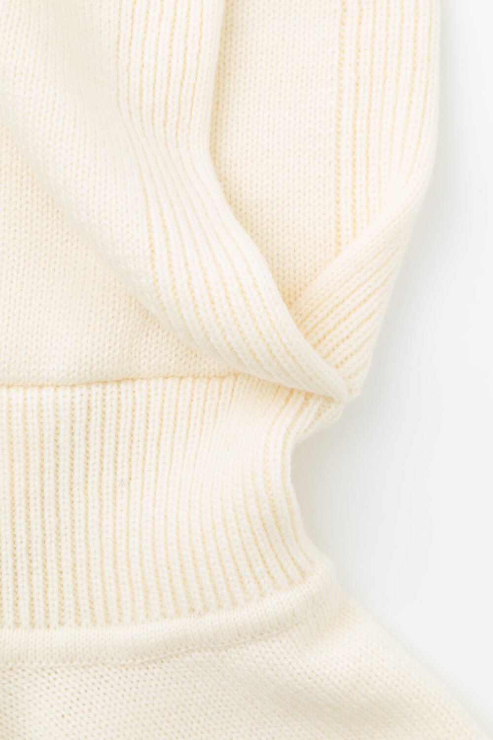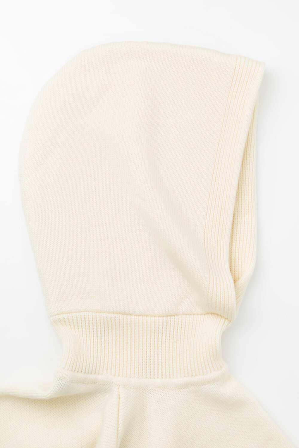 Теплый вязаный капор с глубоким капюшоном из шерсти и акрила. Шерсть в составе хорошо удерживает тепло, а волокна акрила делают изделие мягким и предотвращают деформацию и появление катышек. Лаконичный крой хорошо сочетается с верхней одеждой.