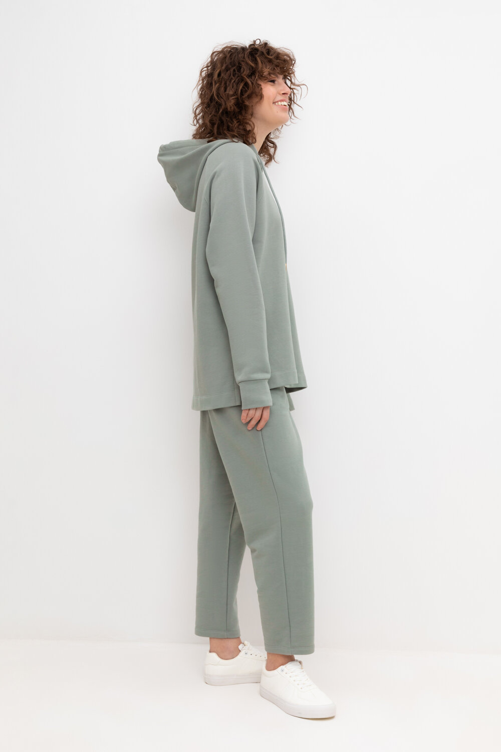 Укороченные теплые брюки на резинке с боковыми карманами из мягкого трикотажного футера трёхнитки.
