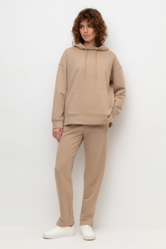 Брюки прямого кроя с боковыми карманами из футера трехнитки с начесом. Гладкий и плотный материал на основе хлопка сохраняет форму.