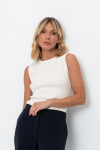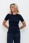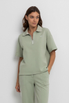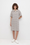 Трикотажное платье-поло из длинноволокнистого гребенного хлопка. Спущенное плечо придает изделию свободный силуэт.