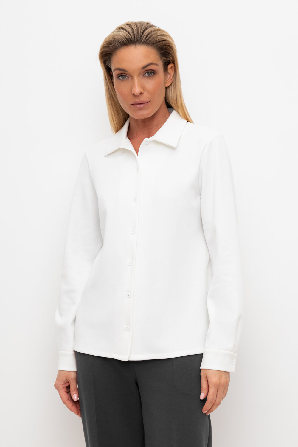 Рубашка прямого кроя из плотного гладкого трикотажа интерлок с длинными рукавами с застежкой на пуговицы