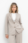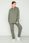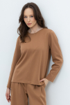 Брюки прямого кроя со стрелкой и боковыми карманами из плотного гладкого трикотажа интерлок.