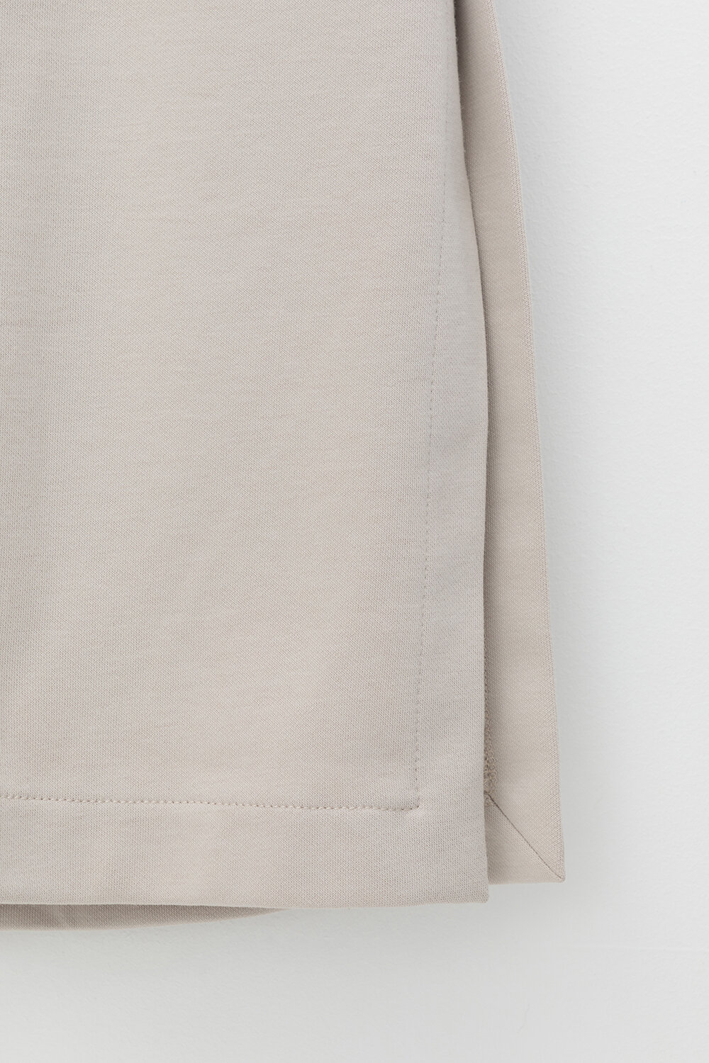 Свободные женские брюки с разрезами и боковыми карманами из плотного гладкого трикотажа интерлок. Низ обработан плоскими швами.