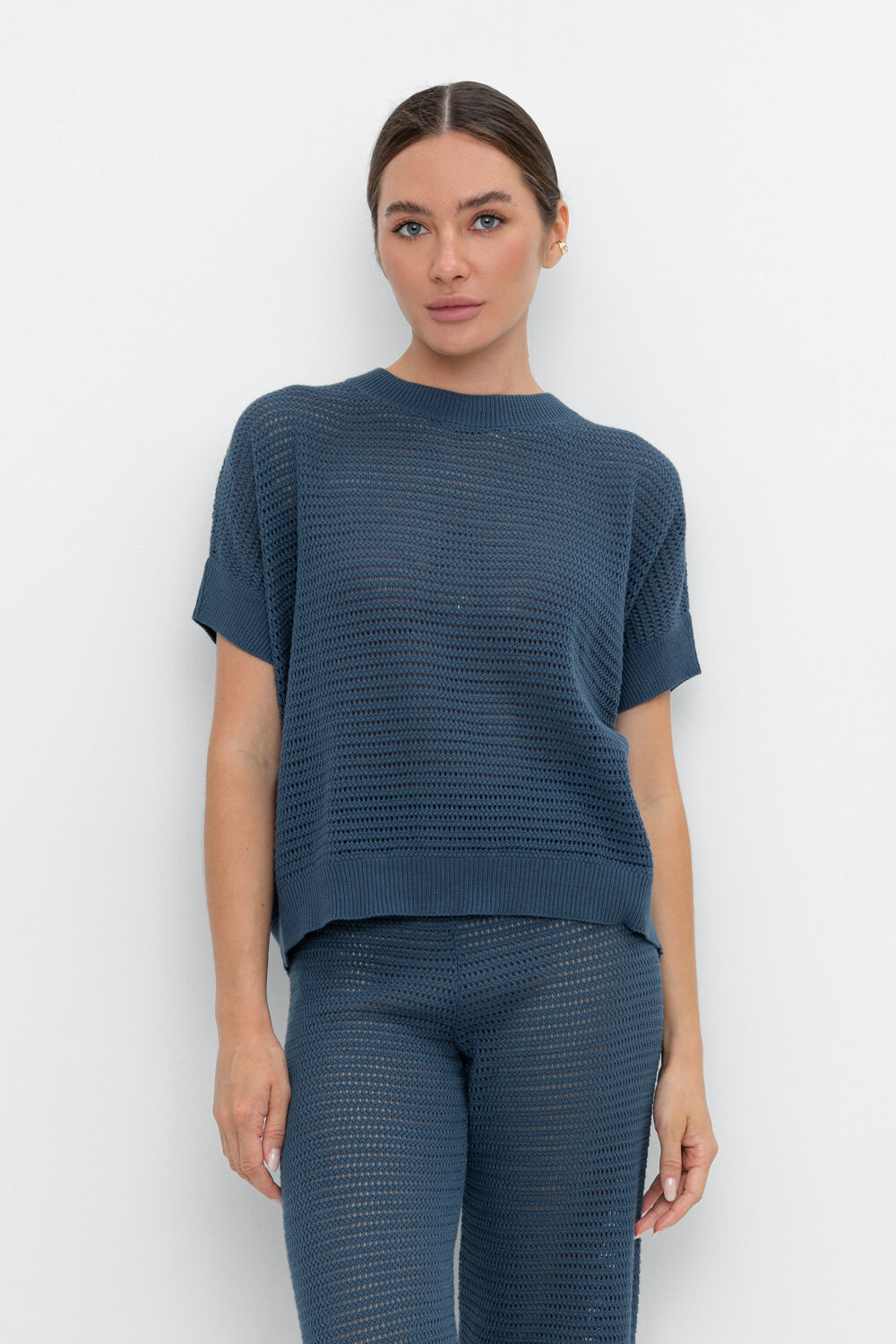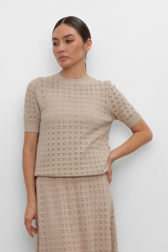 Укороченный вязаный ажурный джемпер. Состав 50% хлопок, 50% акрил. Благодаря акрилу в составе изделие не пилингуется.