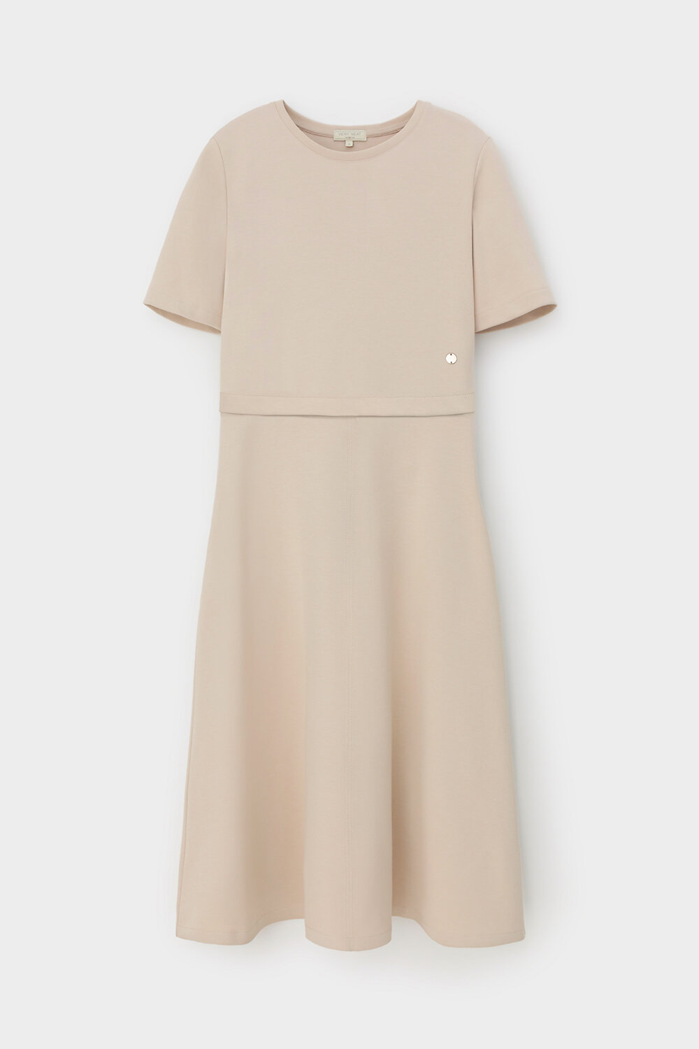 Платье с круглым вырезом и короткими рукавами из плотного трикотажа интерлок. Модель с трапециевидной юбкой.