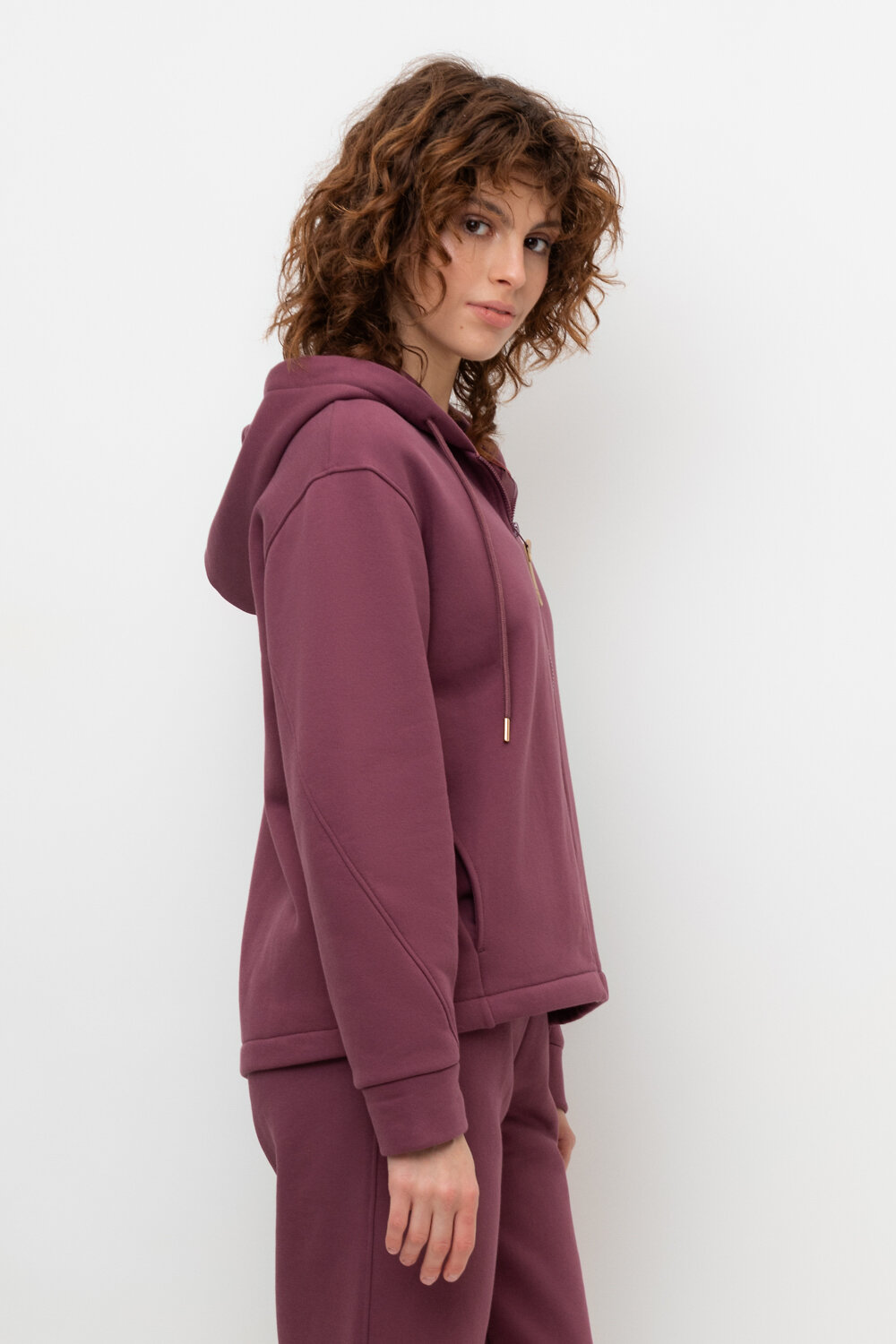 Тёплая трикотажная куртка на молнии с глубоким капюшоном. Произведена из мягкого трикотажного футер трёхнитки с начёсом. В составе 80% натурального хлопка и 20% полиэстера, при этом полиэстер ввязан внутрь по особой технологии и не соприкасается с кожей. В капюшоне мягкий подклад.