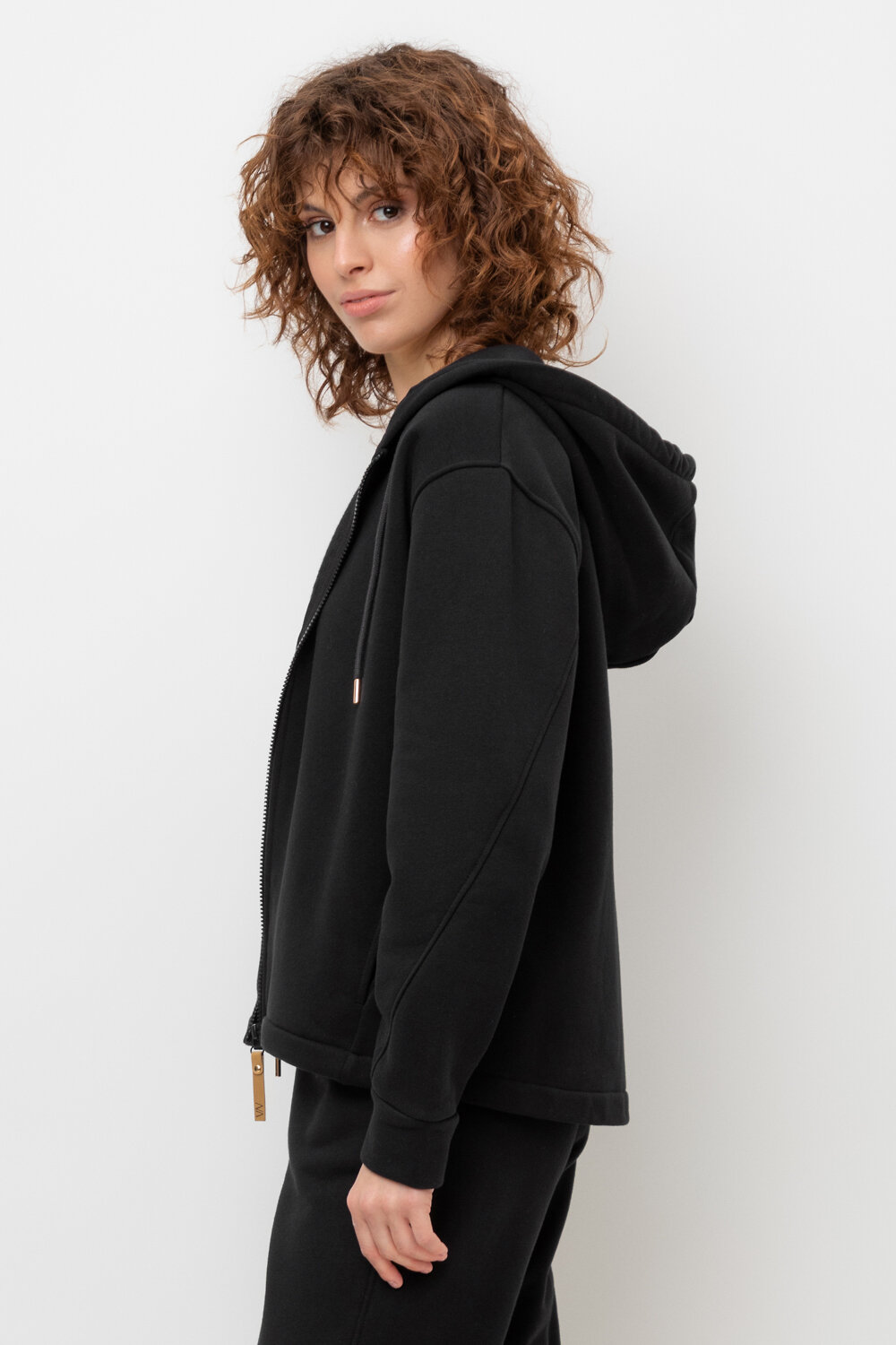Тёплая трикотажная куртка на молнии с глубоким капюшоном. Произведена из мягкого трикотажного футер трёхнитки с начёсом. В составе 80% натурального хлопка и 20% полиэстера, при этом полиэстер ввязан внутрь по особой технологии и не соприкасается с кожей. В капюшоне мягкий подклад.
