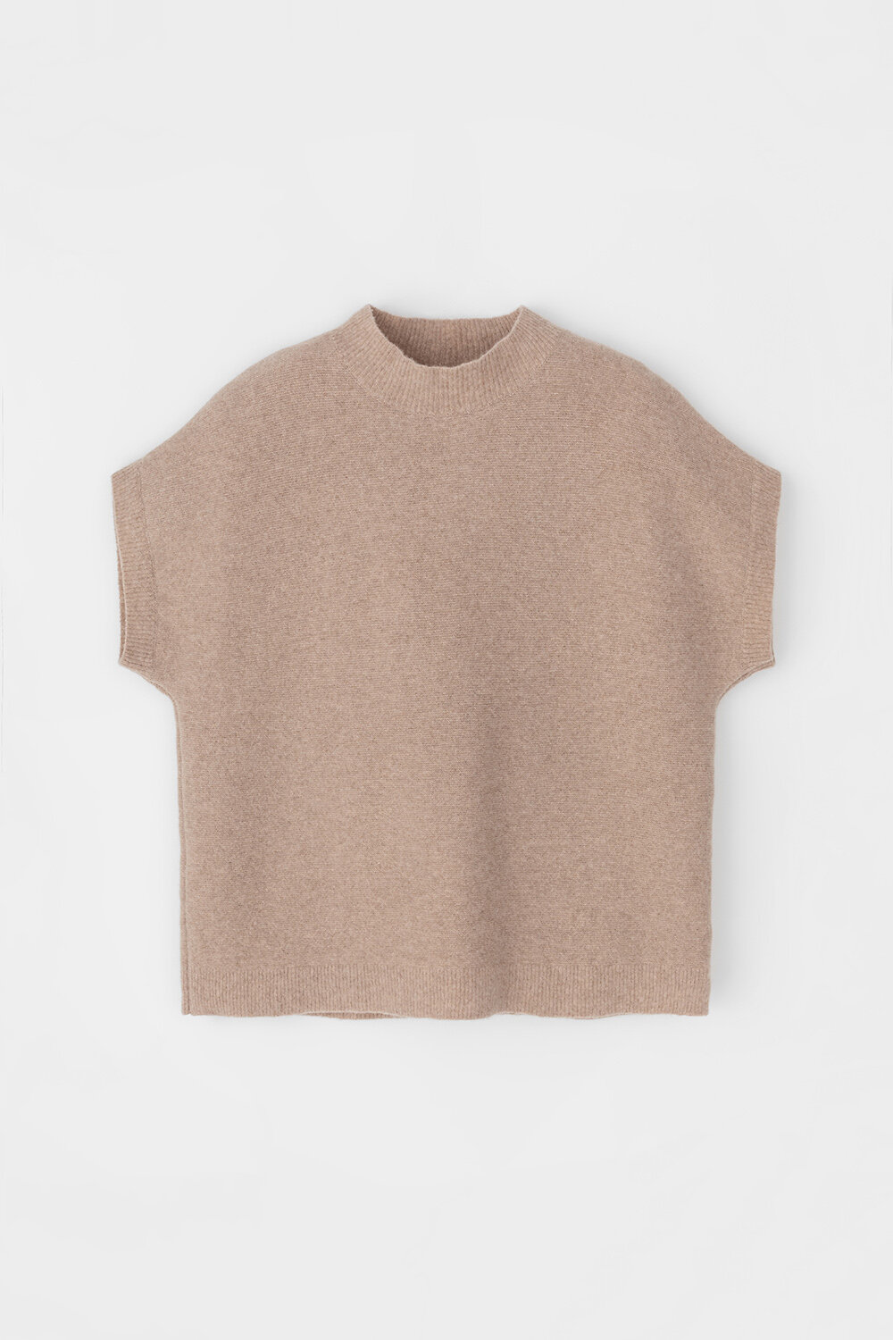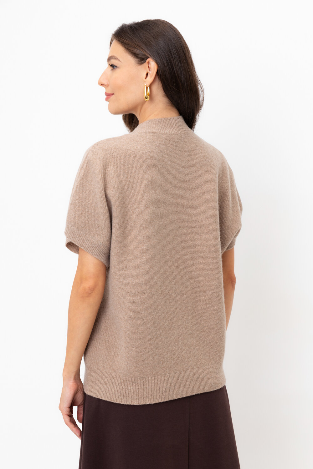 Уютный вязаный джемпер с короткими рукавами из шерсти. Комфортная посадка и цельнокроенные рукава придают изделию объем.
