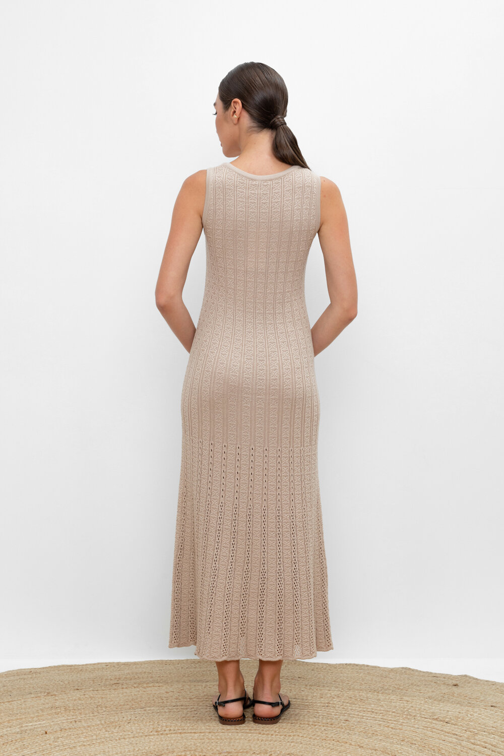 Вязаное платье макси с ажурной юбкой. Состав 50% хлопок, 50% акрил. Благодаря акрилу в составе изделие не пилингуется.