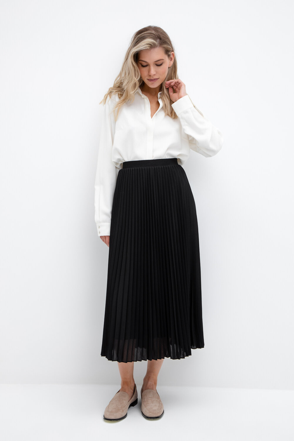 Силуэтная юбка плиссе с подкладом. Пояс на резинке обеспечивает комфортную посадку. Изделие сохраняет цвет и форму после многократных стирок.