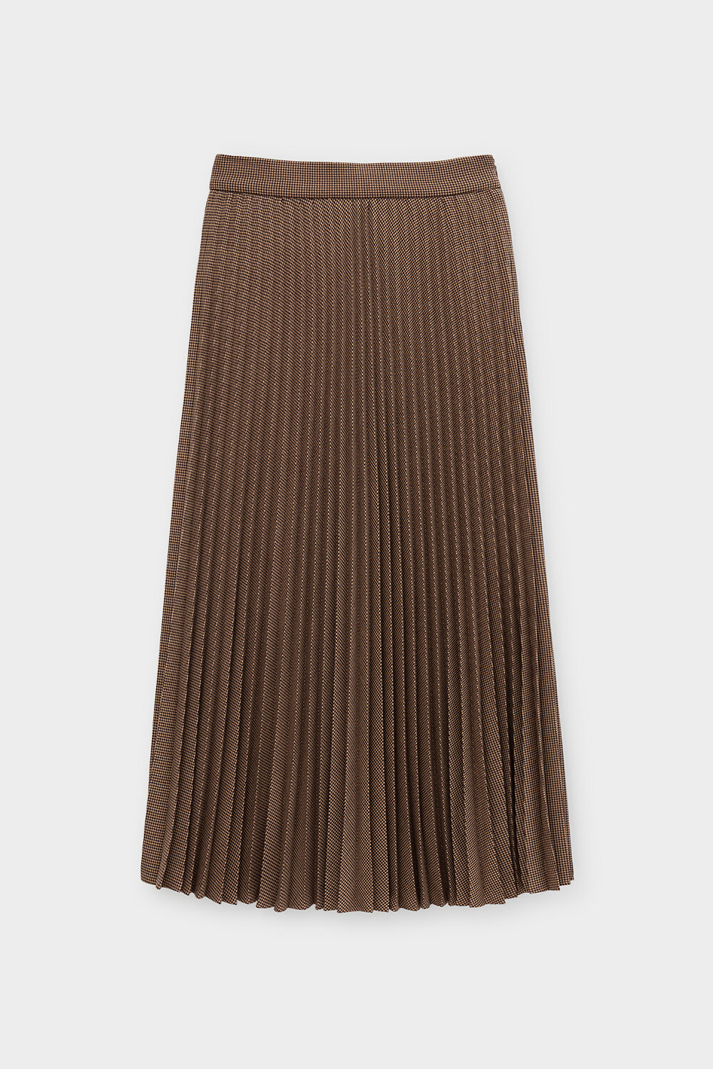 Юбка на поясе длиной миди со складками "гофре" из костюмной ткани с добавлением шерсти с узором "гусиная лапка", с застежкой на потайную молнию.