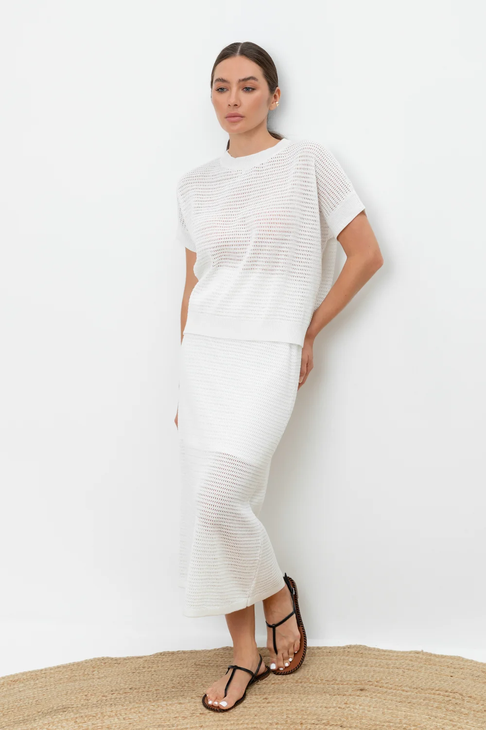 Вязаная ажурная юбка макси с подкладом. Состав 50% хлопок, 50% акрил. Благодаря акрилу в составе изделие не пилингуется.