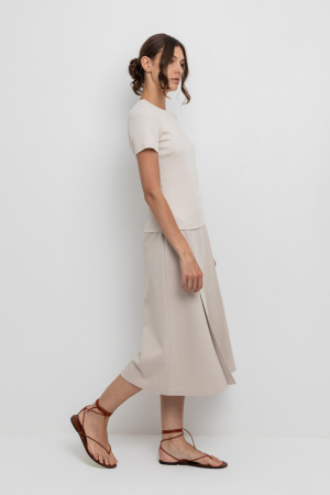 Юбка миди трапециевидной формы с отлетной деталью с разрезами из плотного гладкого трикотажа интерлок.