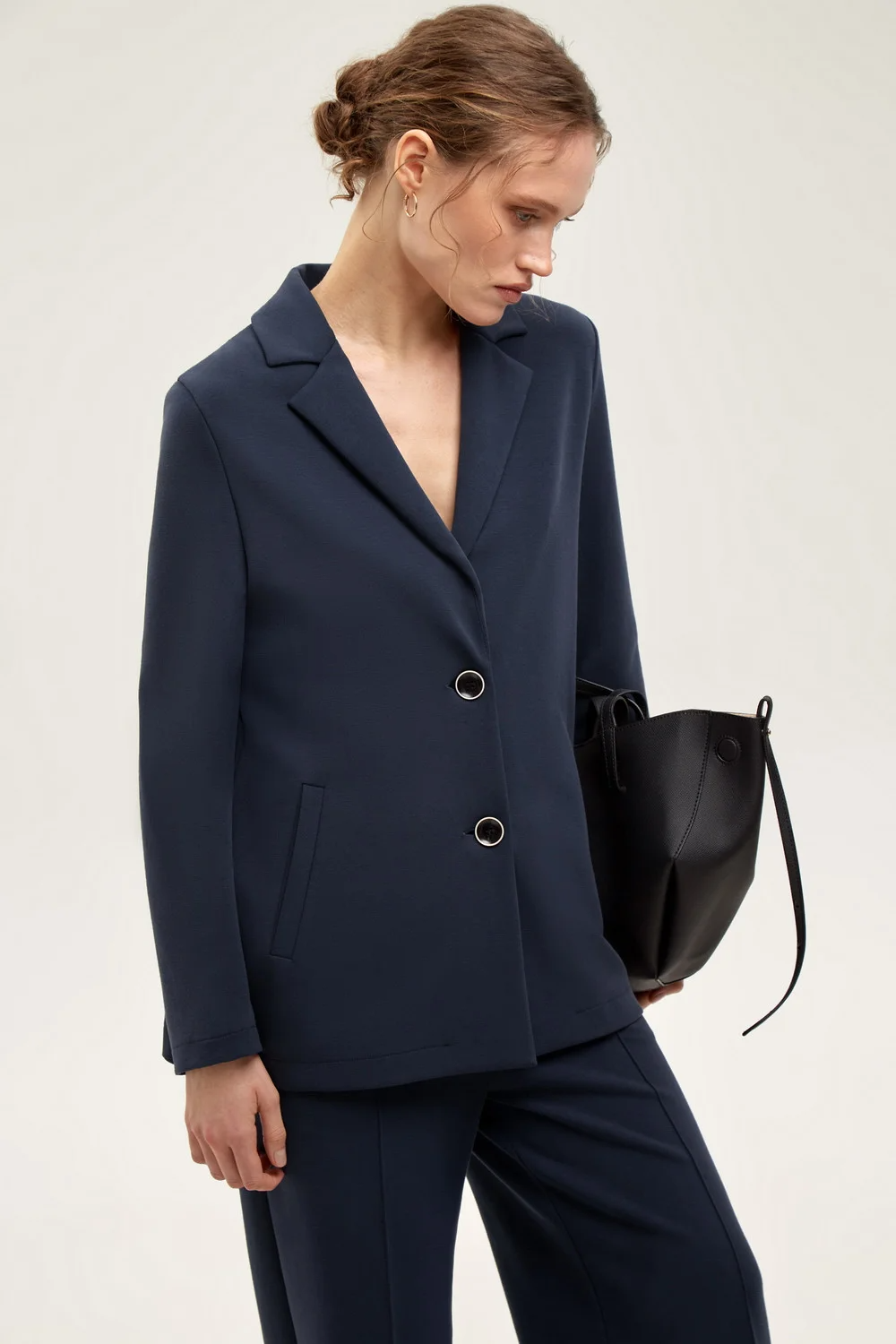 Однобортный жакет приталенного силуэта из премиального трикотажа DOUBLE FACE. За счет фактуры переплетения, добавления спандекса и специальных обработок сохраняет силуэт и форму. Хлопок в составе добавляет комфорта при носке. В сочетании с брюками из этой коллекции вы создадите элегантный образ на каждый день.