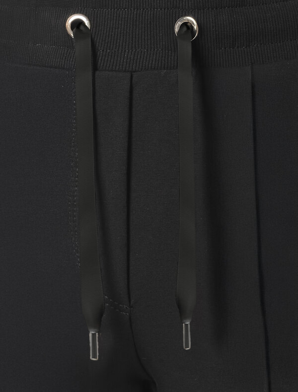 Брюки выполнены из эластичного футера-двухнитки. Модель дополнена застроченными стрелками, что визуально вытягивает силуэт. Эластичный пояс на резинке с хлопковым шнурком и металлической фурнитурой. Брюки сочетаются в костюме с футболкой D49.031 и бомбером D49.038