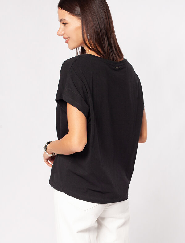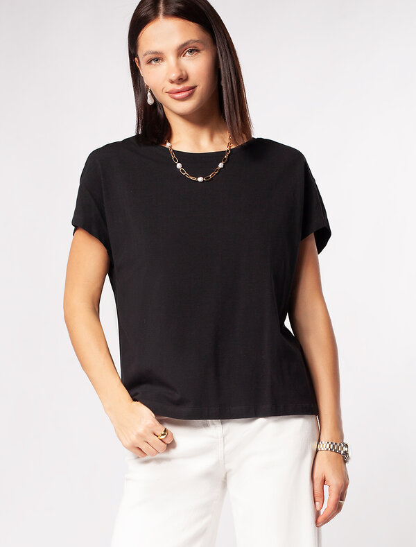 Футболка выполнена из эластичного премиального хлопка. Свободный силуэт и цельнокроеный рукав подходит для любого типа фигуры. На спинке изделия фирменный логотип бренда. Сочетай футболку с любимыми джинсами, брюками, юбками и шортами и создавай стильные аутфиты, в которых будет комфортно каждый день.