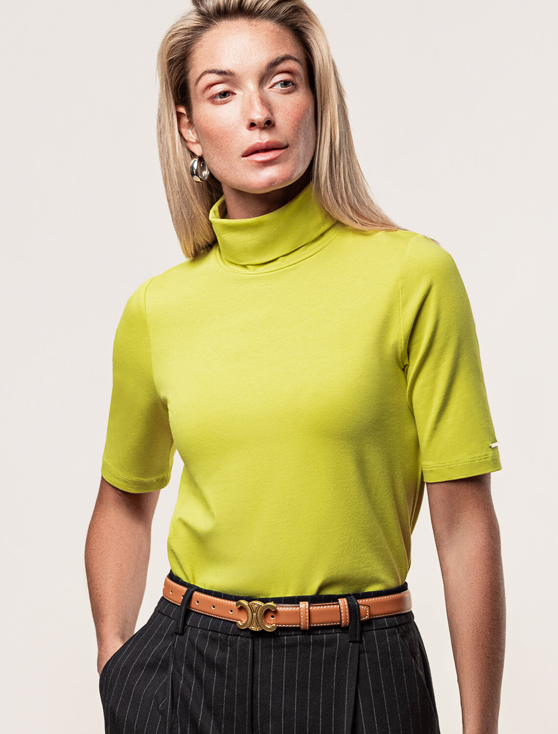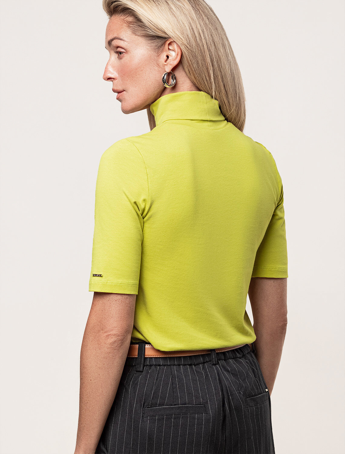 Лаймовая водолазка с коротким рукавом выполнена из премиального хлопка с добавлением эластичных волокон. Гладкий трикотаж обеспечит гарантированный комфорт и удобство в использовании. На рукаве изделия металлическая нашивка с логотипом бренда. Совет стилиста: водолазку с коротким удобно сочетать с жакетом или блузкой. Также как самостоятельный верх к широким брюкам.