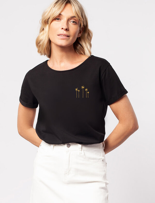 Футболка выполнена из премиального хлопка с эластаном. Авторский принт нанесен красками с устойчивым покрытием. Модель среднего объема дополнена подворотами на рукавах. Легко впишется в повседневные аутфиты и добавит акцента в образы. Изделие дополнено металлическим логотипом бренда.
