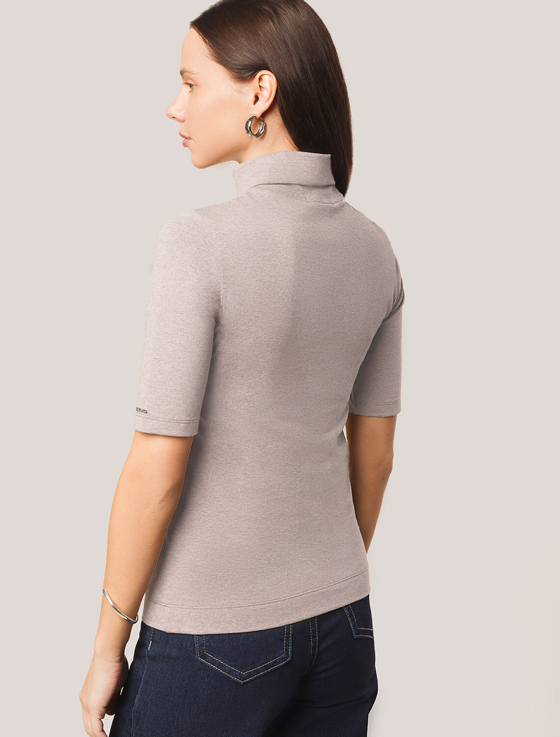 Водолазка с коротким рукавом выполнена из премиального хлопка с добавлением эластана. Гладкий трикотаж обеспечит гарантированный комфорт и удобство в использовании. Внизу изделия металлическая нашивка с логотипом бренда. Совет стилиста: водолазка может заменить рубашку в нестрогом офисном образе или подружиться с джинсами-трубами, жилетом и кедами в расслабленном повседневном наряде.